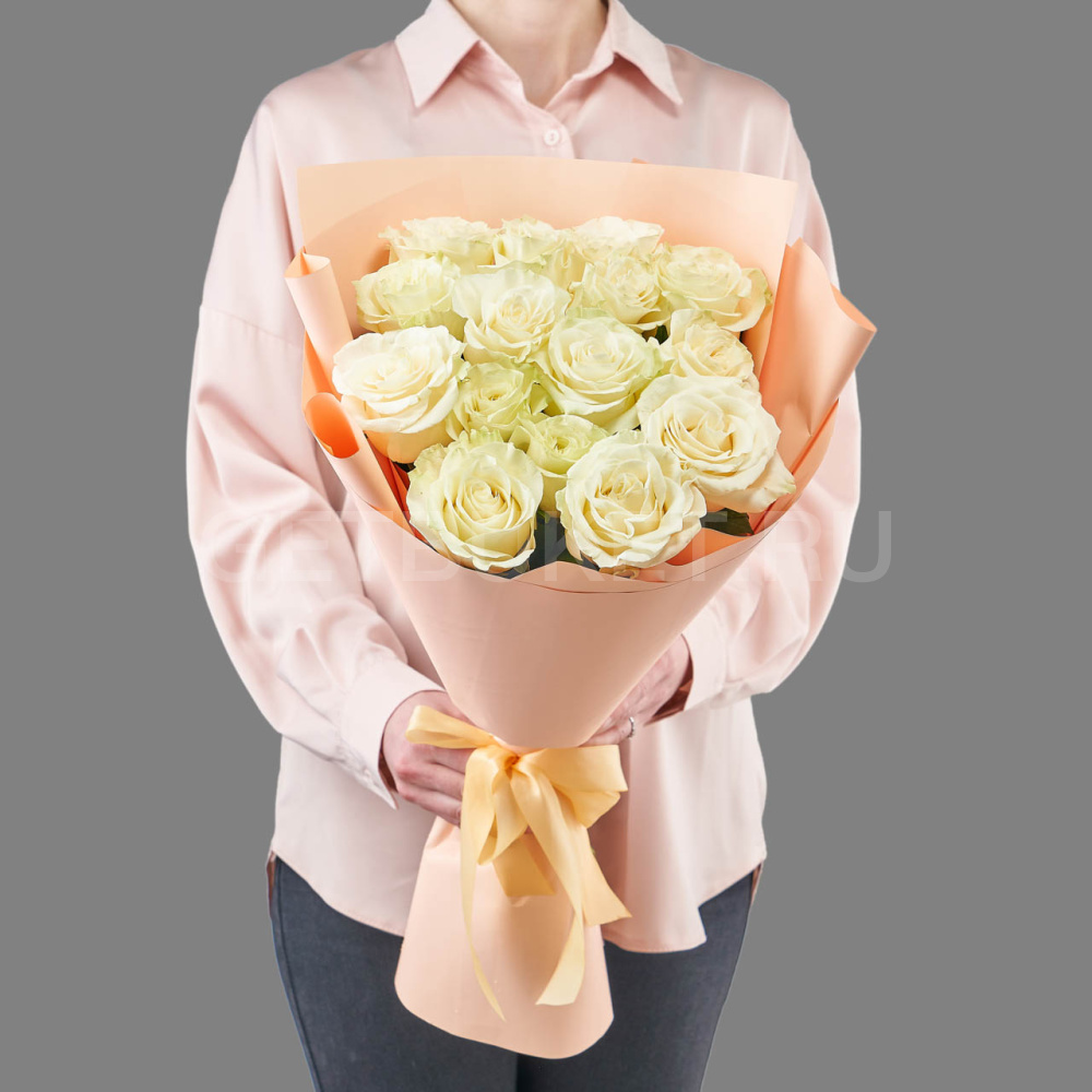 Букет из 15 белых роз в упаковке